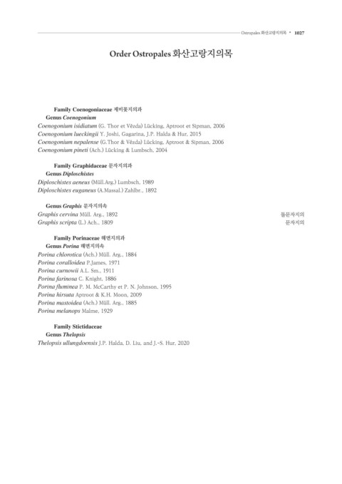Ostropales 화산고랑지의목 • 1027