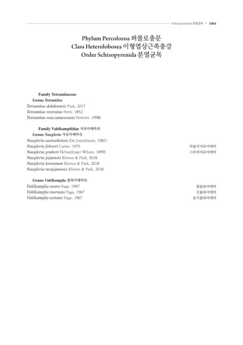 Family Vahlkampfiidae 자유아메바과