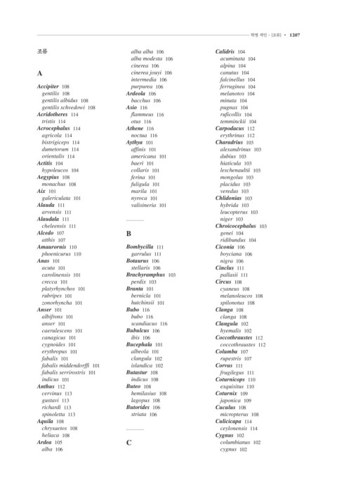 Amaurornis 110 Bombycilla 111 Ciconia 106