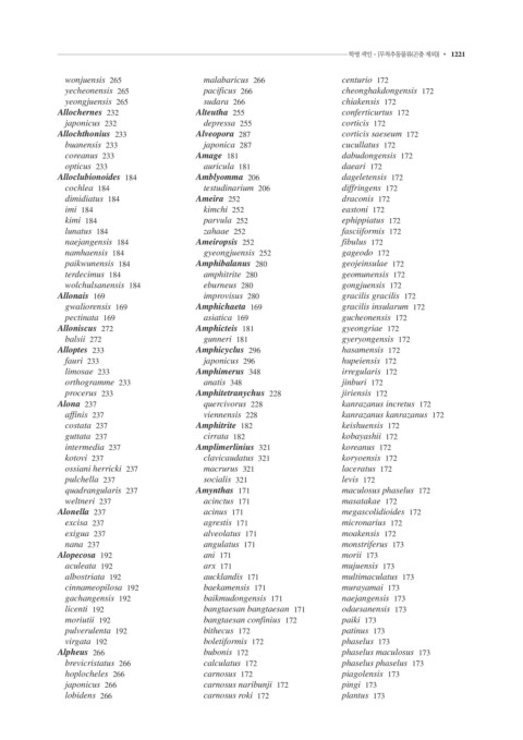 1220 • 색인 학명 색인 - [무척추동물류(곤충 제외)] • 1221