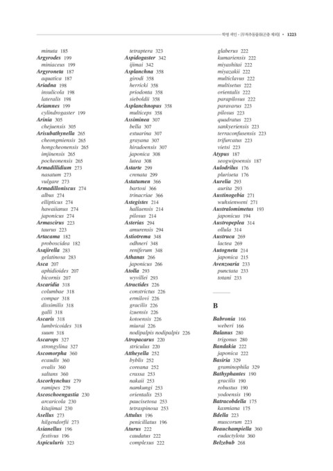 1222 • 색인 학명 색인 - [무척추동물류(곤충 제외)] • 1223
