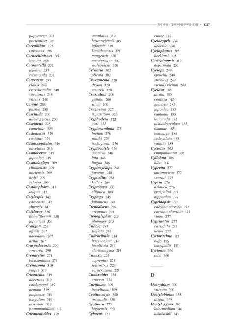 1226 • 색인 학명 색인 - [무척추동물류(곤충 제외)] • 1227