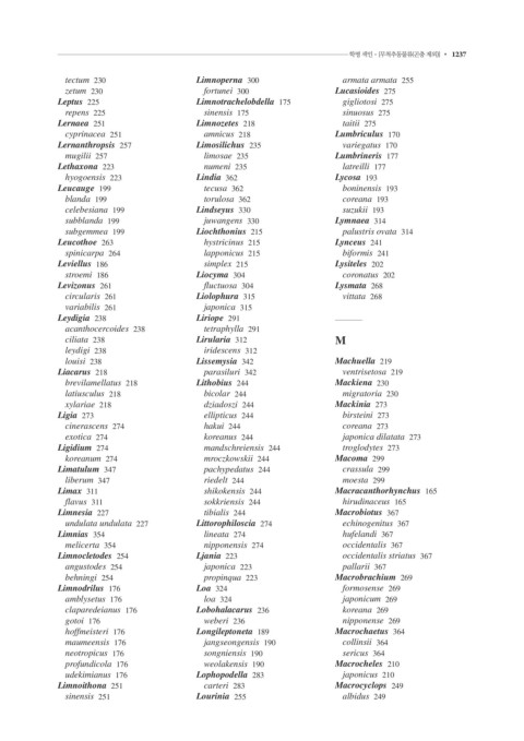 1236 • 색인 학명 색인 - [무척추동물류(곤충 제외)] • 1237