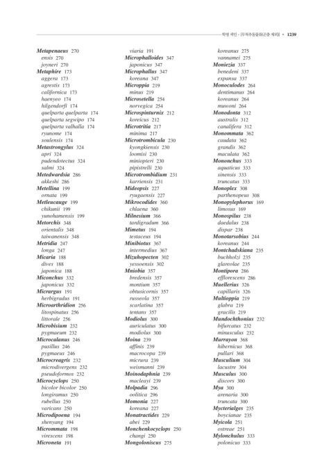 1238 • 색인 학명 색인 - [무척추동물류(곤충 제외)] • 1239