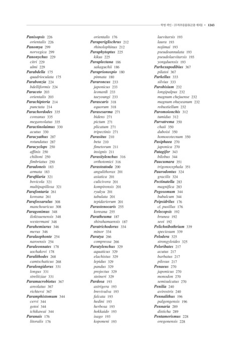 1242 • 색인 학명 색인 - [무척추동물류(곤충 제외)] • 1243
