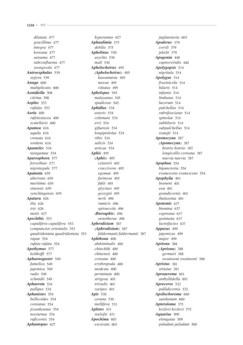 Aphanistes 554 Apis 530 Apsilochorema 660