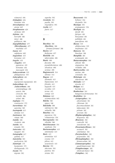 1260 • 색인 학명 색인 - [곤충류] • 1261