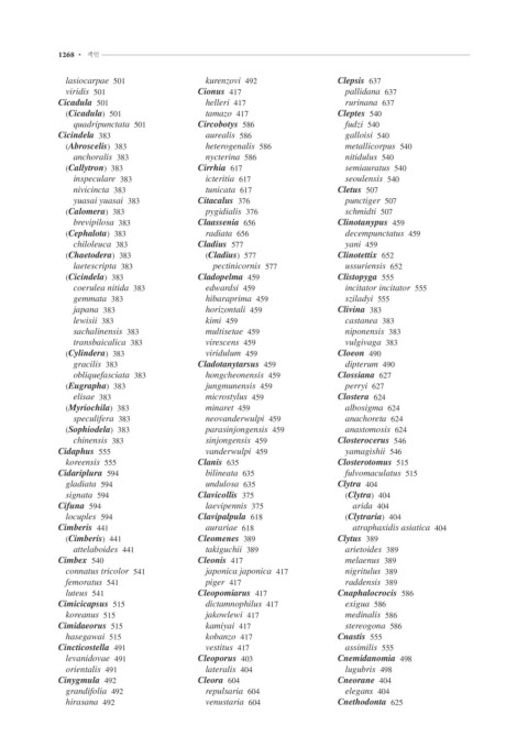 levanidovae 491 Cleoporus 403 Cnemidanomia 498