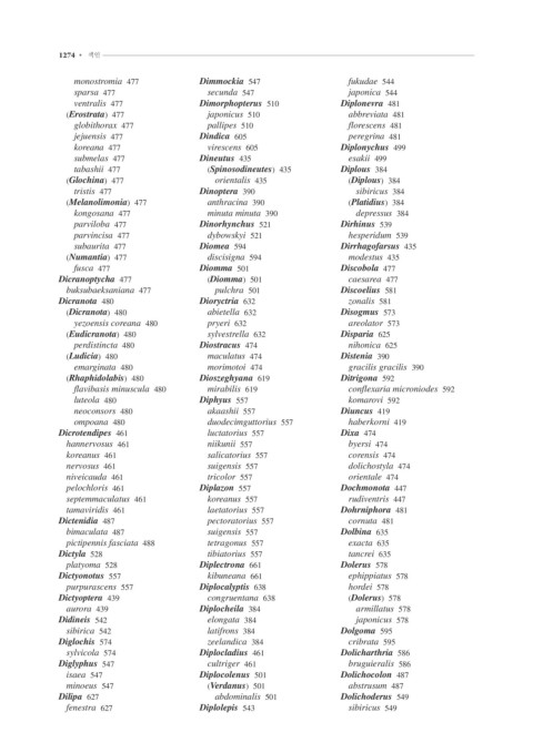 ventralis 477 Dimorphopterus 510 Diplonevra 481
