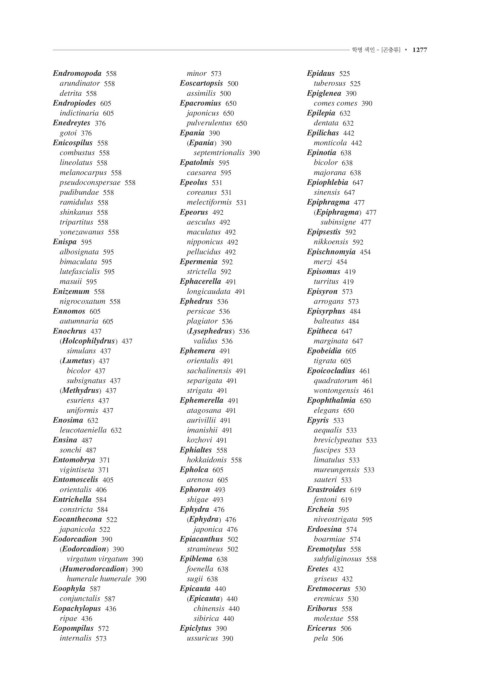 1276 • 색인 학명 색인 - [곤충류] • 1277