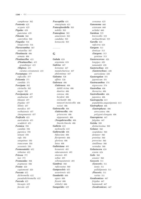 Fleutiauxllus 433 Gabala 624 Gasterocercus 420