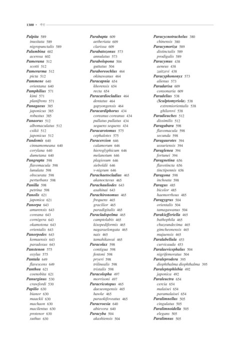 Palpita 589 Parabapta 609 Paracycnotrachelus 380