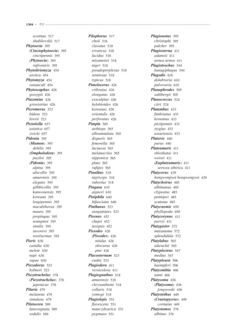 Piezotrachelus 378 Plagiognathus 518 nami 466