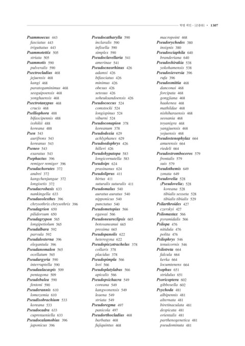 1306 • 색인 학명 색인 - [곤충류] • 1307