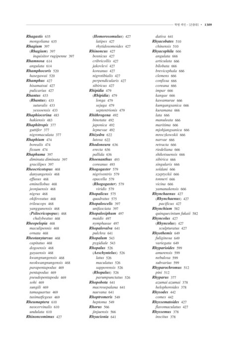 1308 • 색인 학명 색인 - [곤충류] • 1309