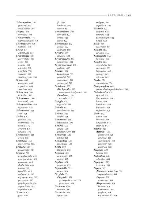 1310 • 색인 학명 색인 - [곤충류] • 1311