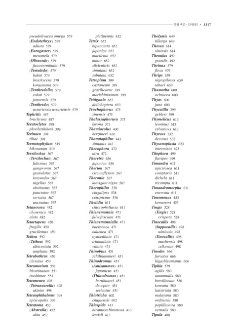 1316 • 색인 학명 색인 - [곤충류] • 1317