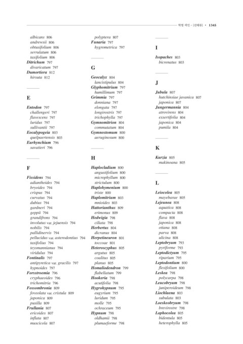 1344 • 색인 학명 색인 - [선태류] • 1345