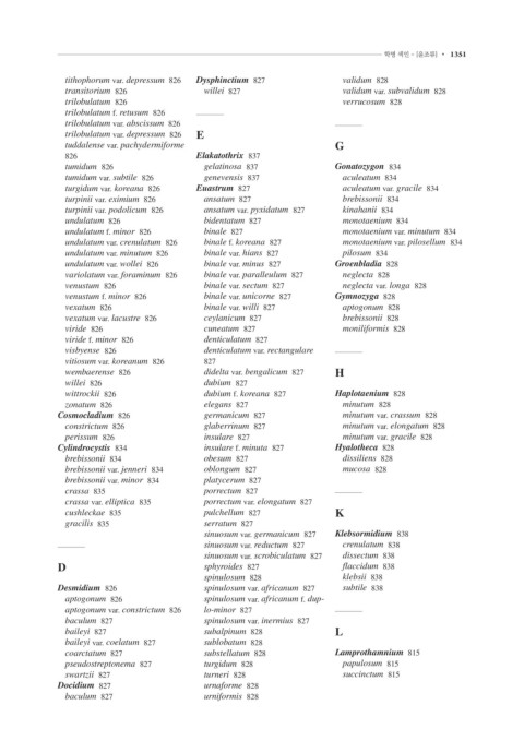 undulatum var. crenulatum 826 binale f. koreana 827 monotaenium var. pilosellum 834