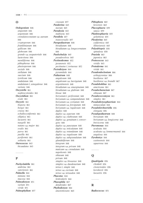Palmella 844 tetras var. tetraodon 848 lacustris 856