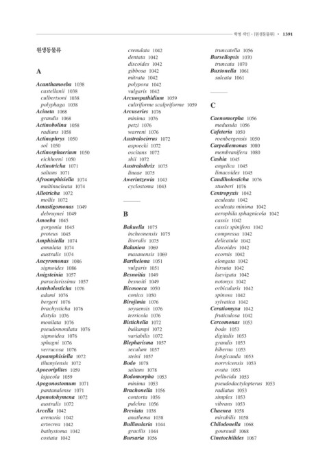 1390 • 색인 학명 색인 - [원생동물류] • 1391