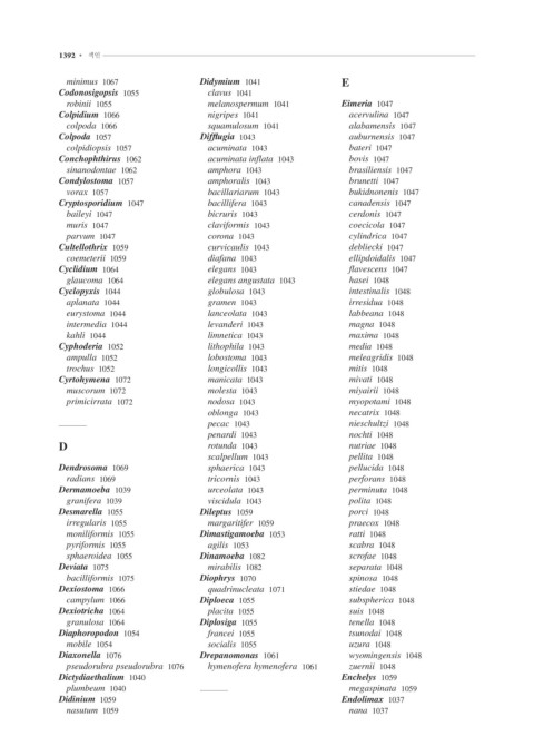robinii 1055 melanospermum 1041 Eimeria 1047