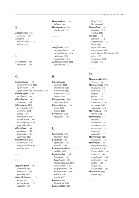 1400 • 색인 학명 색인 - [남조류] • 1401