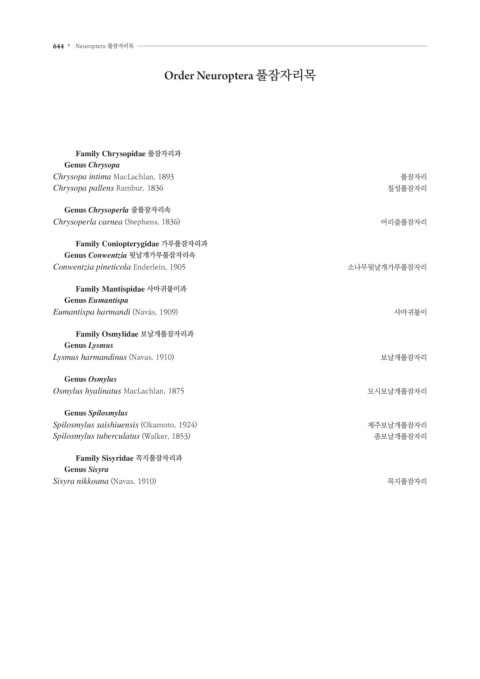 644 • Neuroptera 풀잠자리목
