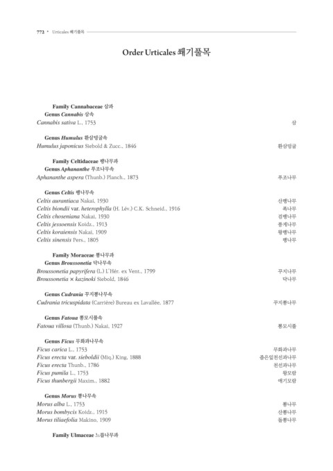 772 • Urticales 쐐기풀목