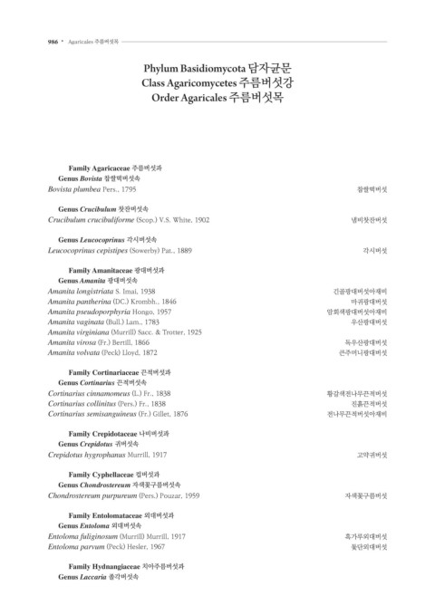 986 • Agaricales 주름버섯목